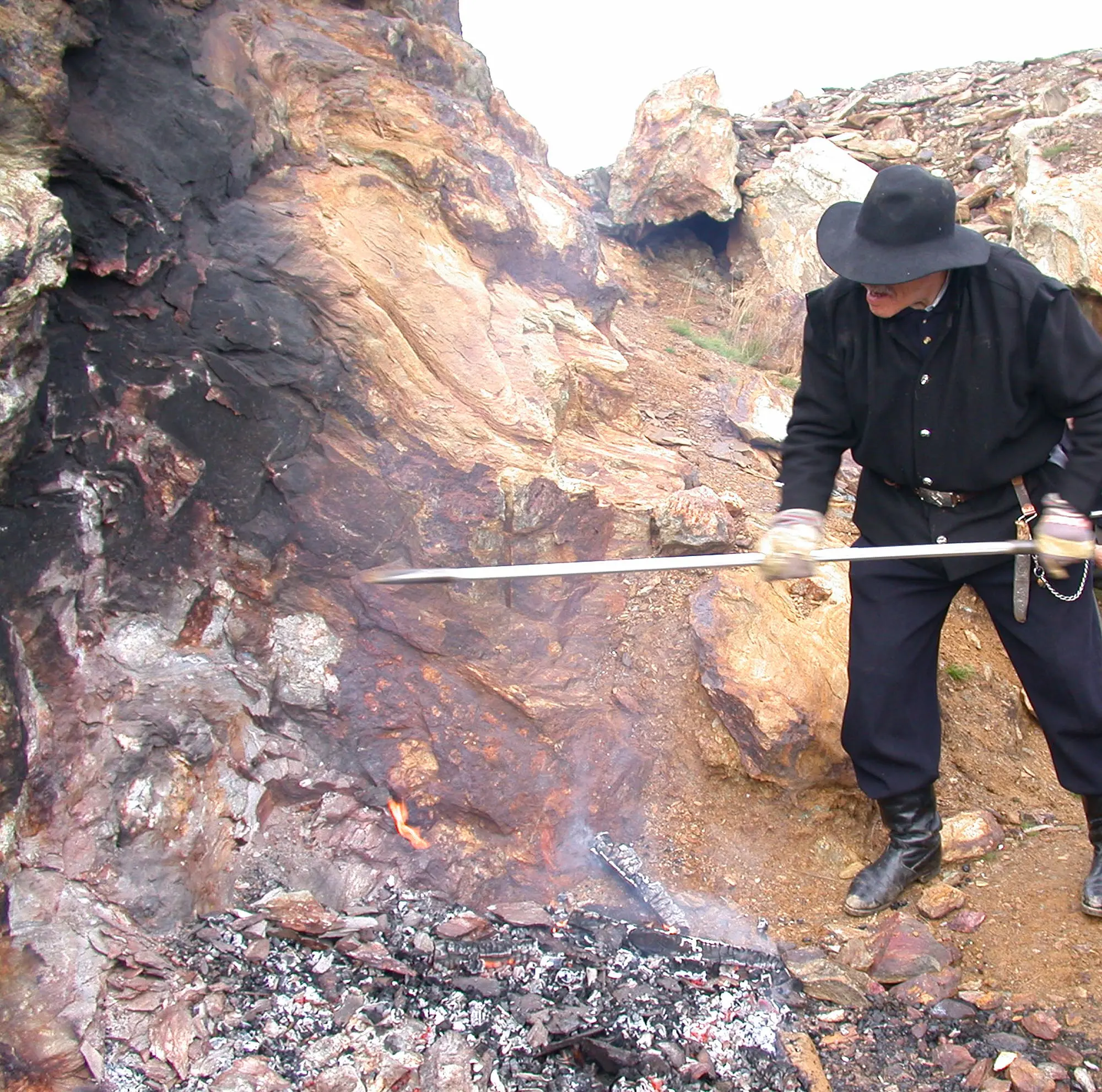 I gammel tid brukte gruvearbeiderne Ã¥ sette ild mot bergveggen for Ã¥ gjøre brytingen lettere. Ved Ã¥ gjøre berget sprøtt kunne større og mindre stykker av berget løsne av seg selv. Berg som ble brutt ved bruk av varme ble kalt «fyr-ty», mens det som inneholdt malm ble kalt «ty», og det døde grÃ¥berget ble kalt «u-ty».