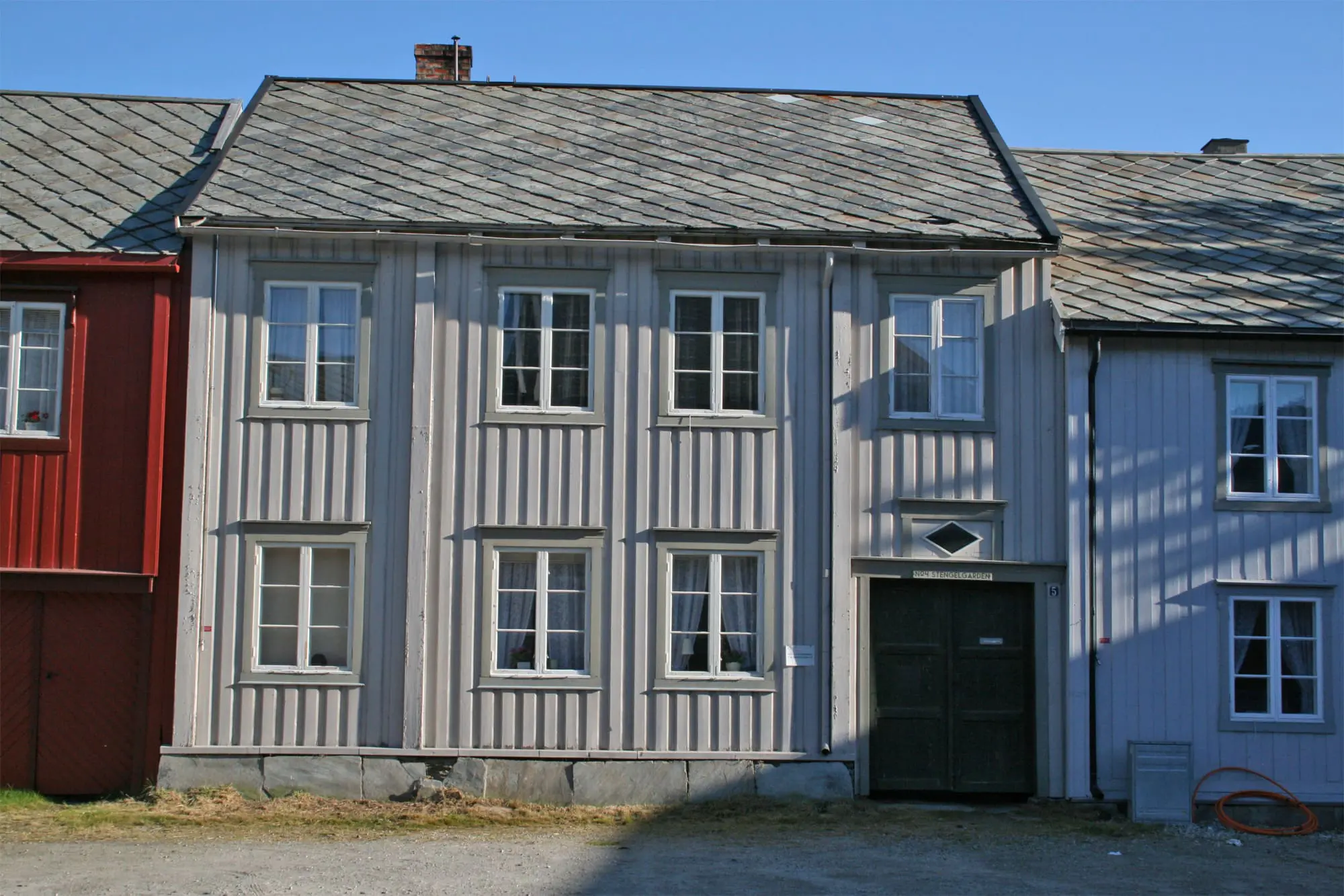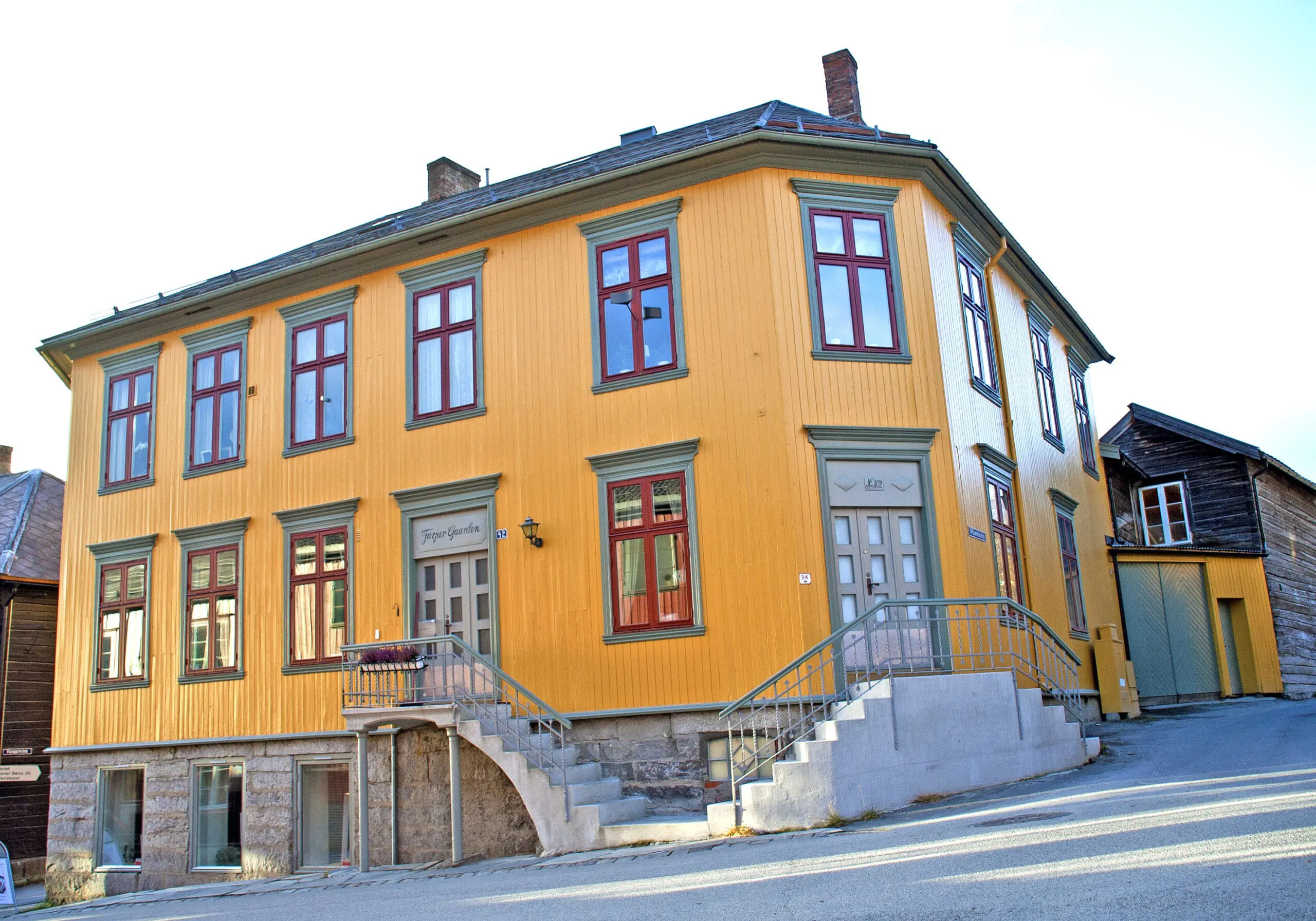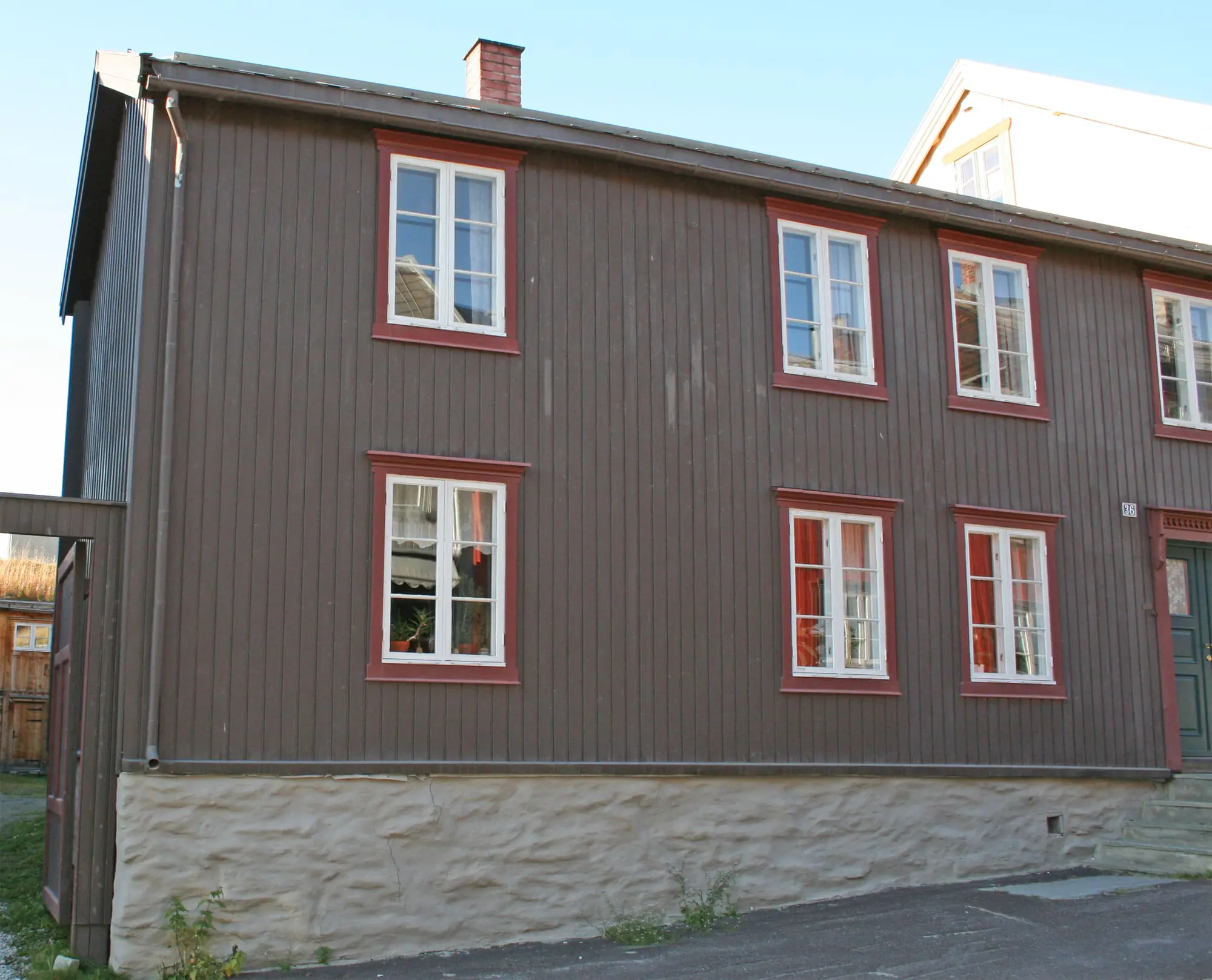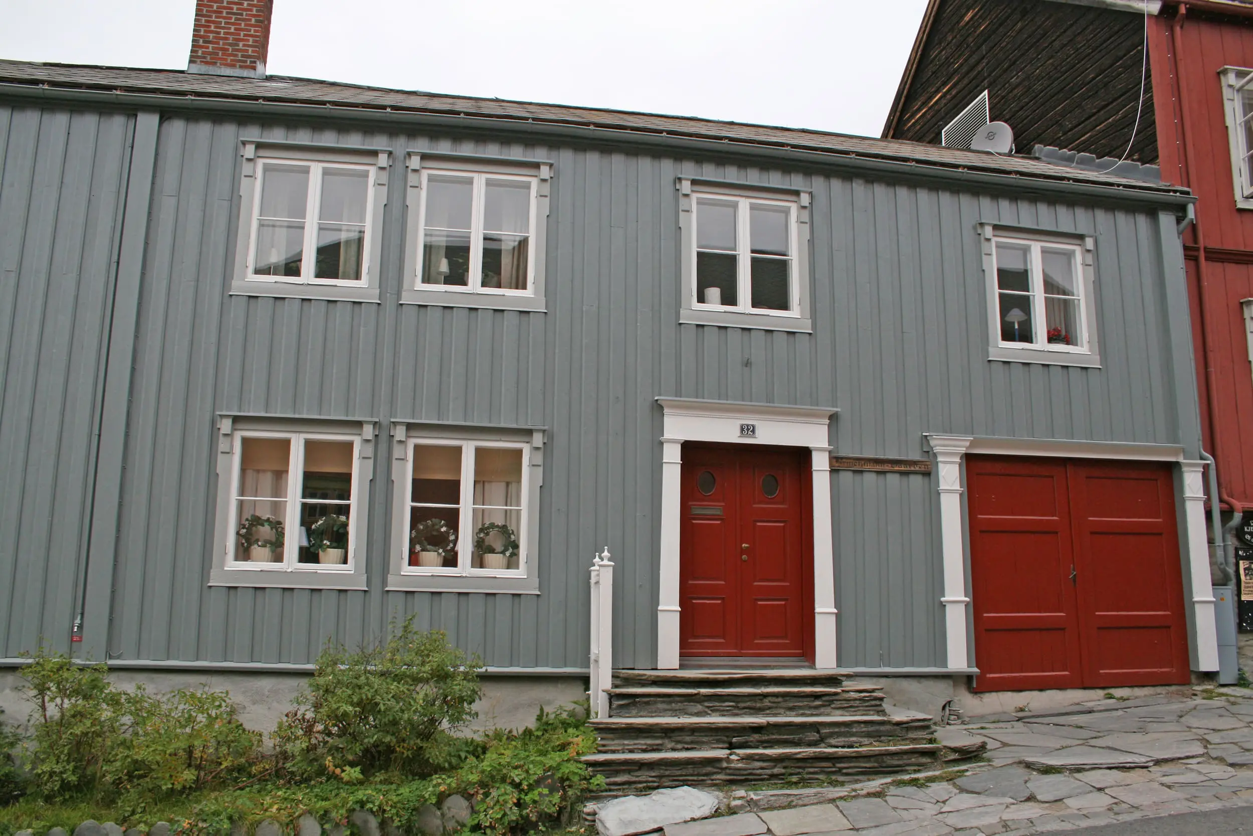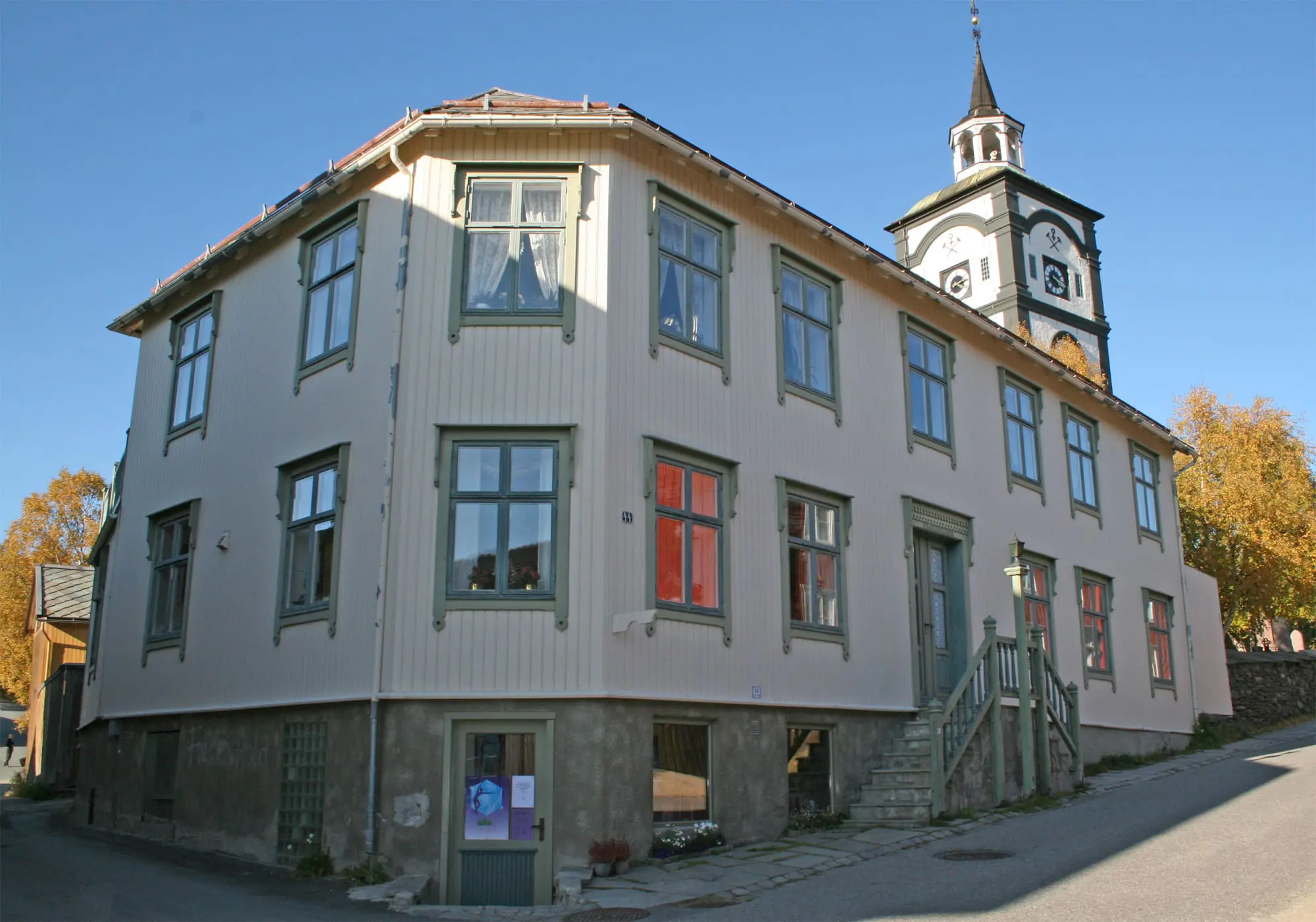 Abildgaard betyr «eple-/frukthage», og på våpenskjoldet finner man hjelm og utskårne epler. Peter Abildgaard var gift med søster av verksdirektør Peder Hiort, og det kan være forklaringen på at skjoldet også har et hjortehode. Dette bildet viser våpenskjoldet etter restaureringen i 2017.