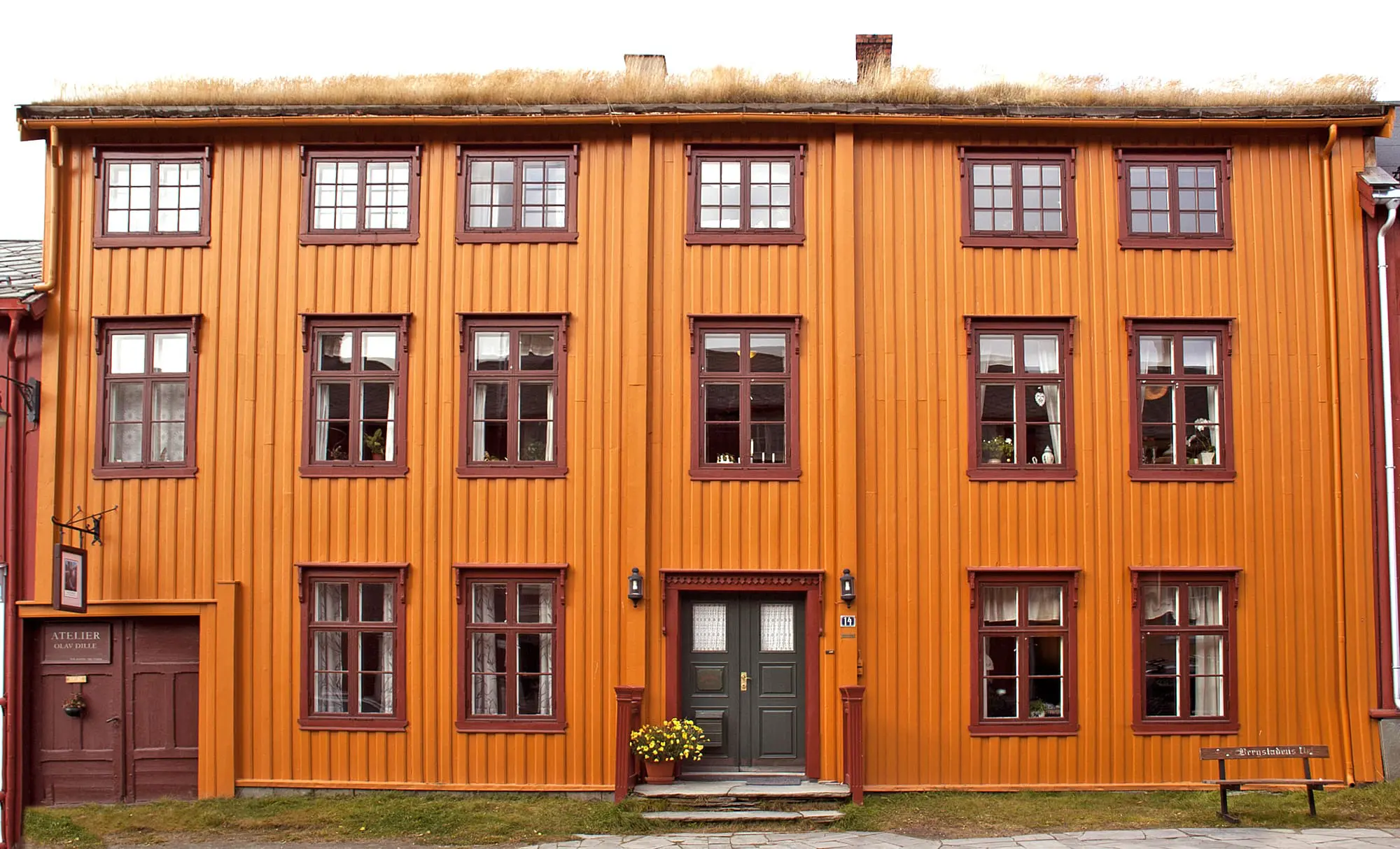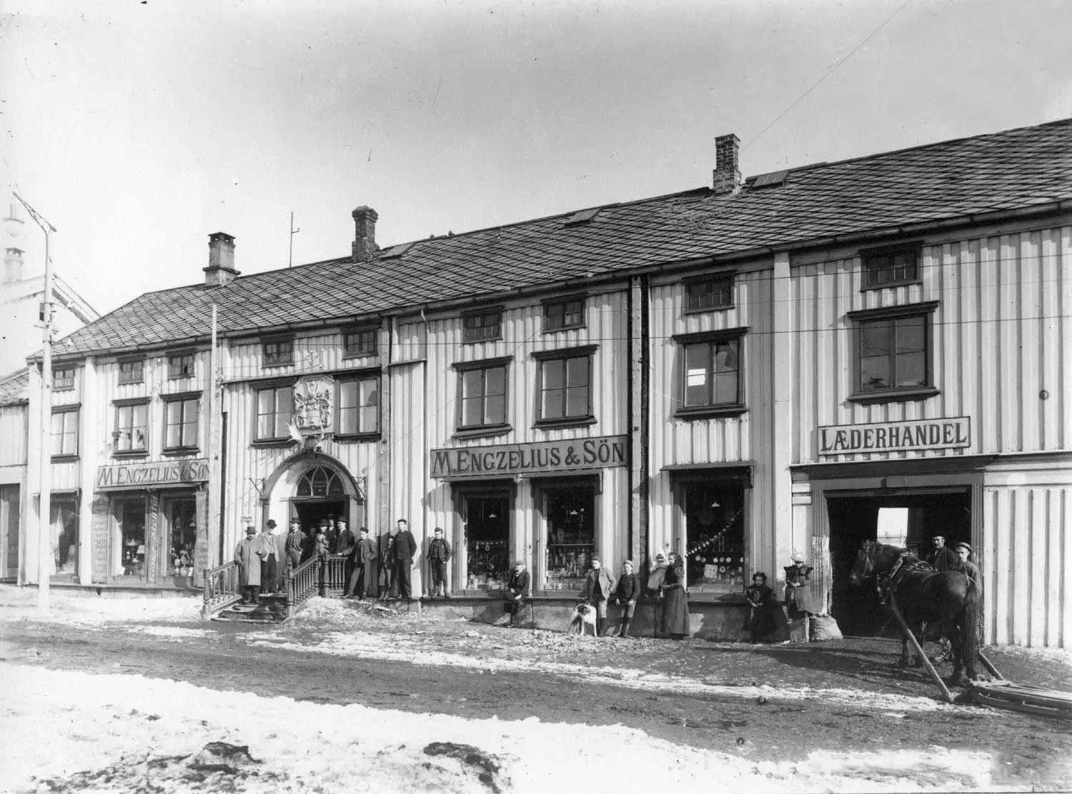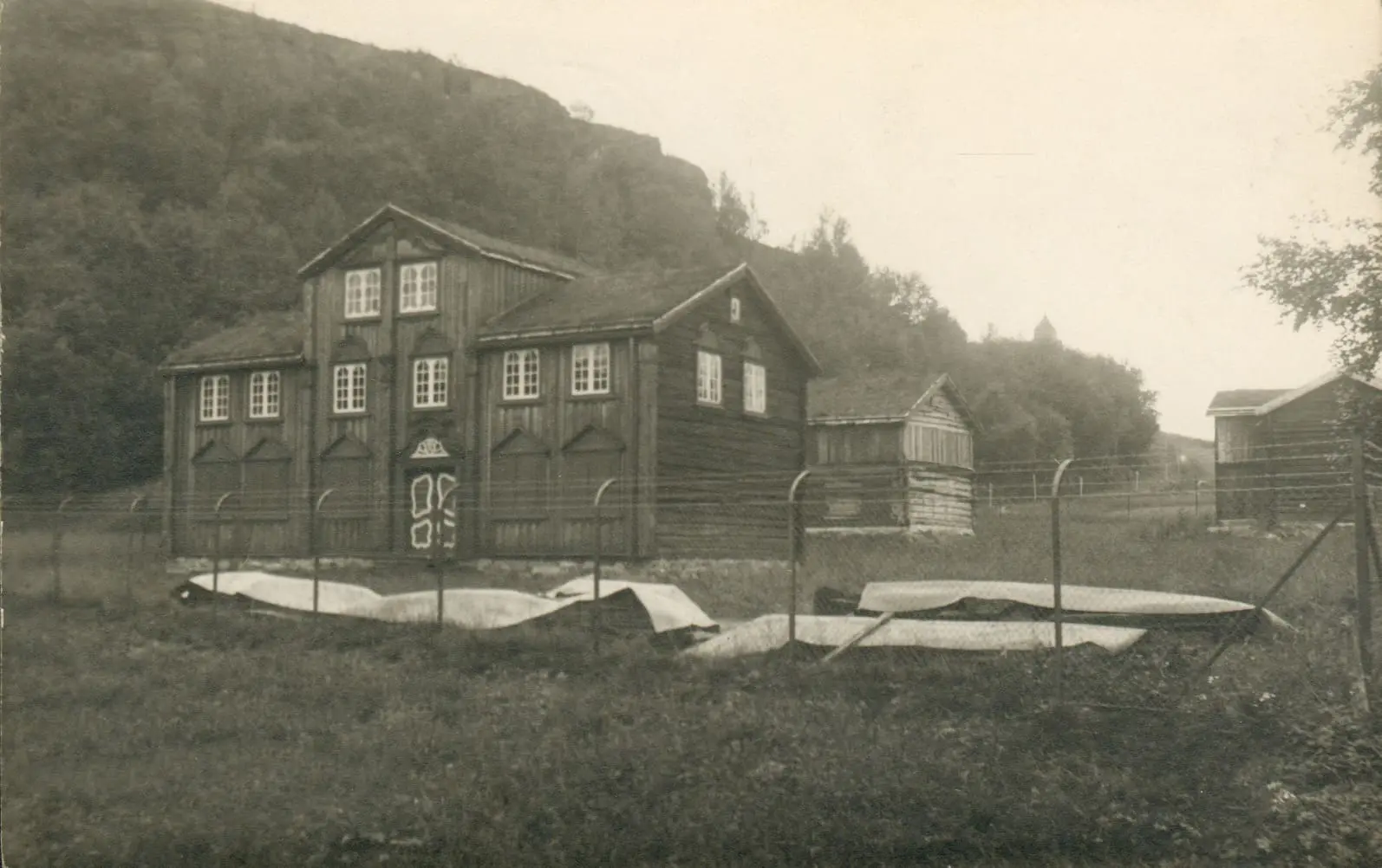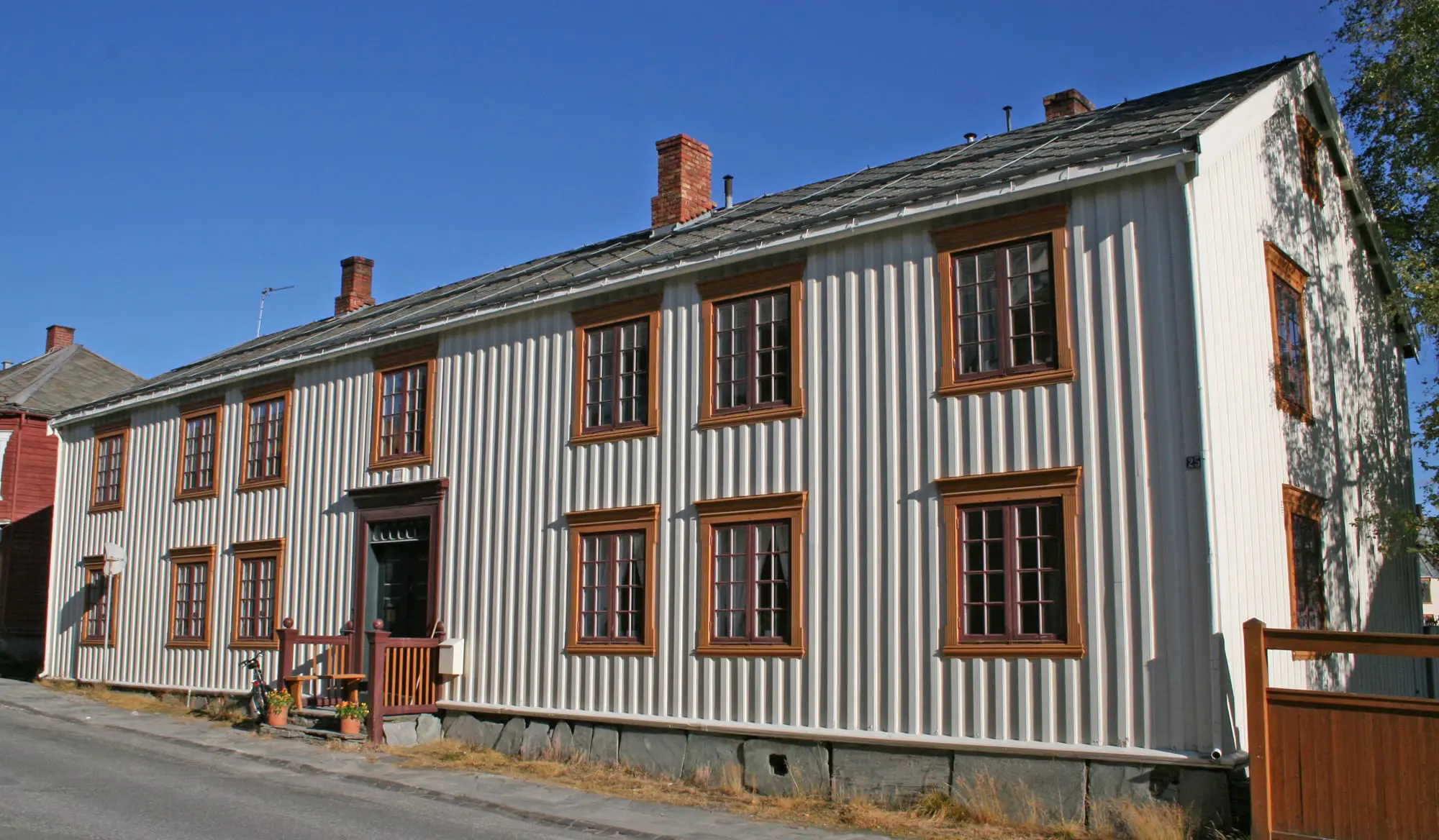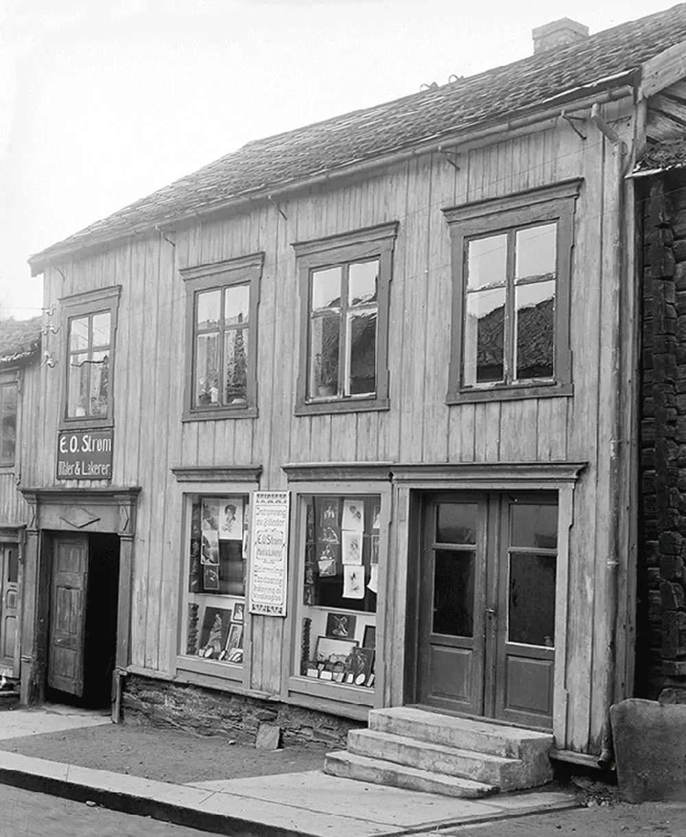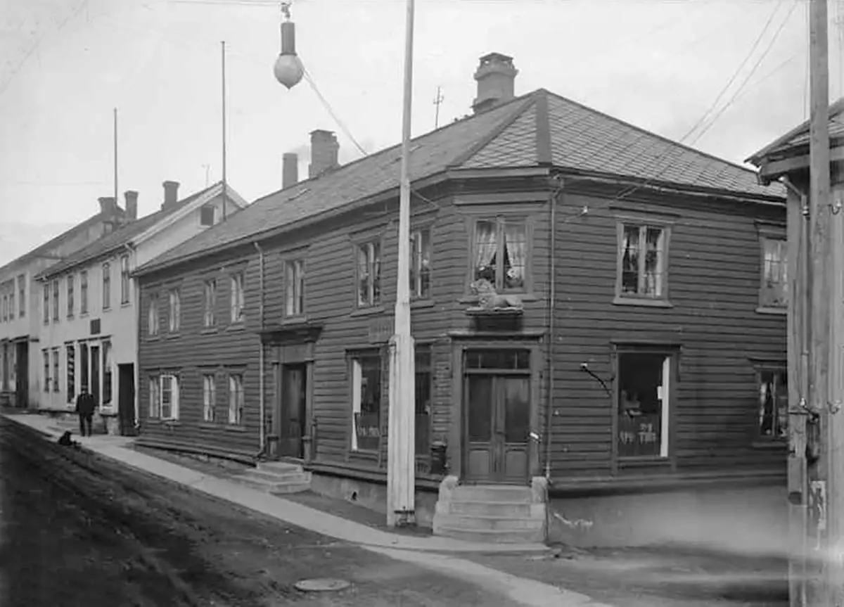 Abildgaard betyr «eple-/frukthage», og på våpenskjoldet finner man hjelm og utskårne epler. Peter Abildgaard var gift med søster av verksdirektør Peder Hiort, og det kan være forklaringen på at skjoldet også har et hjortehode. Dette bildet viser våpenskjoldet etter restaureringen i 2017.