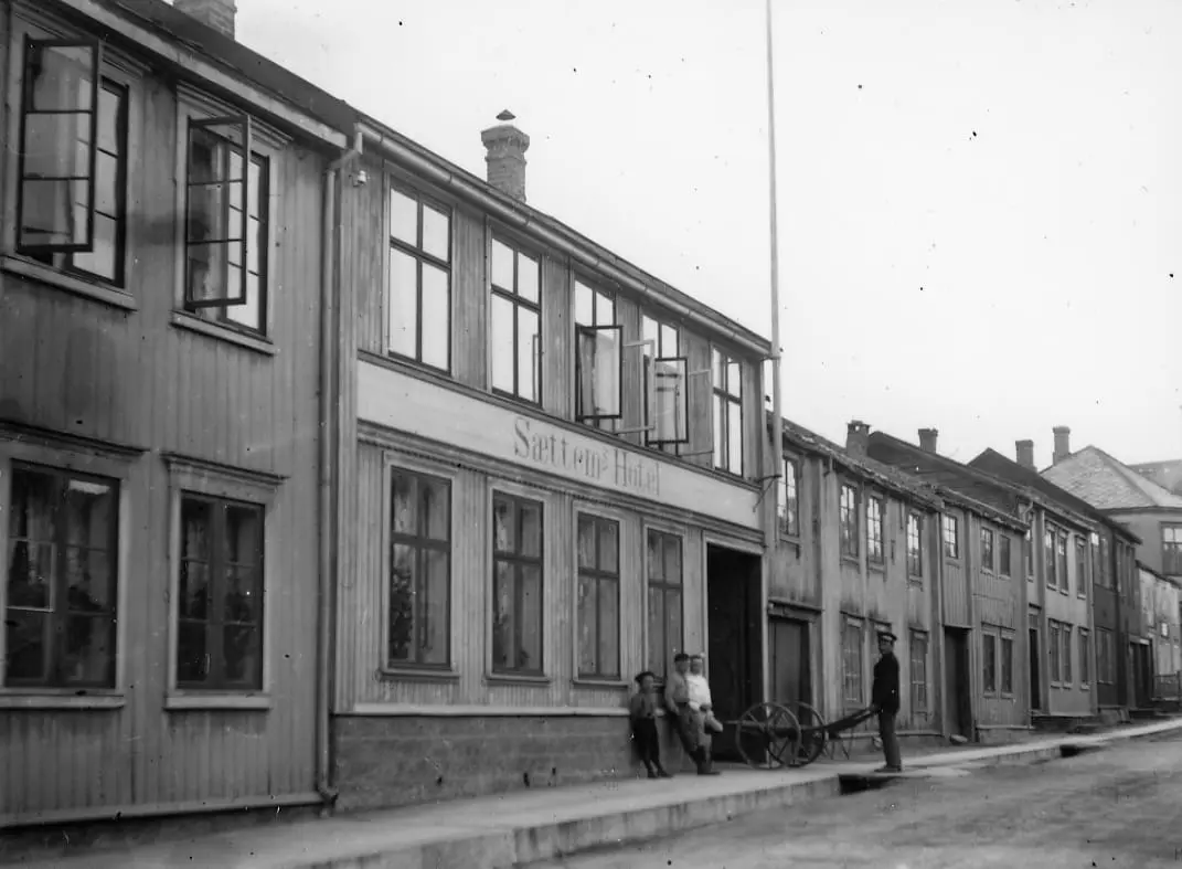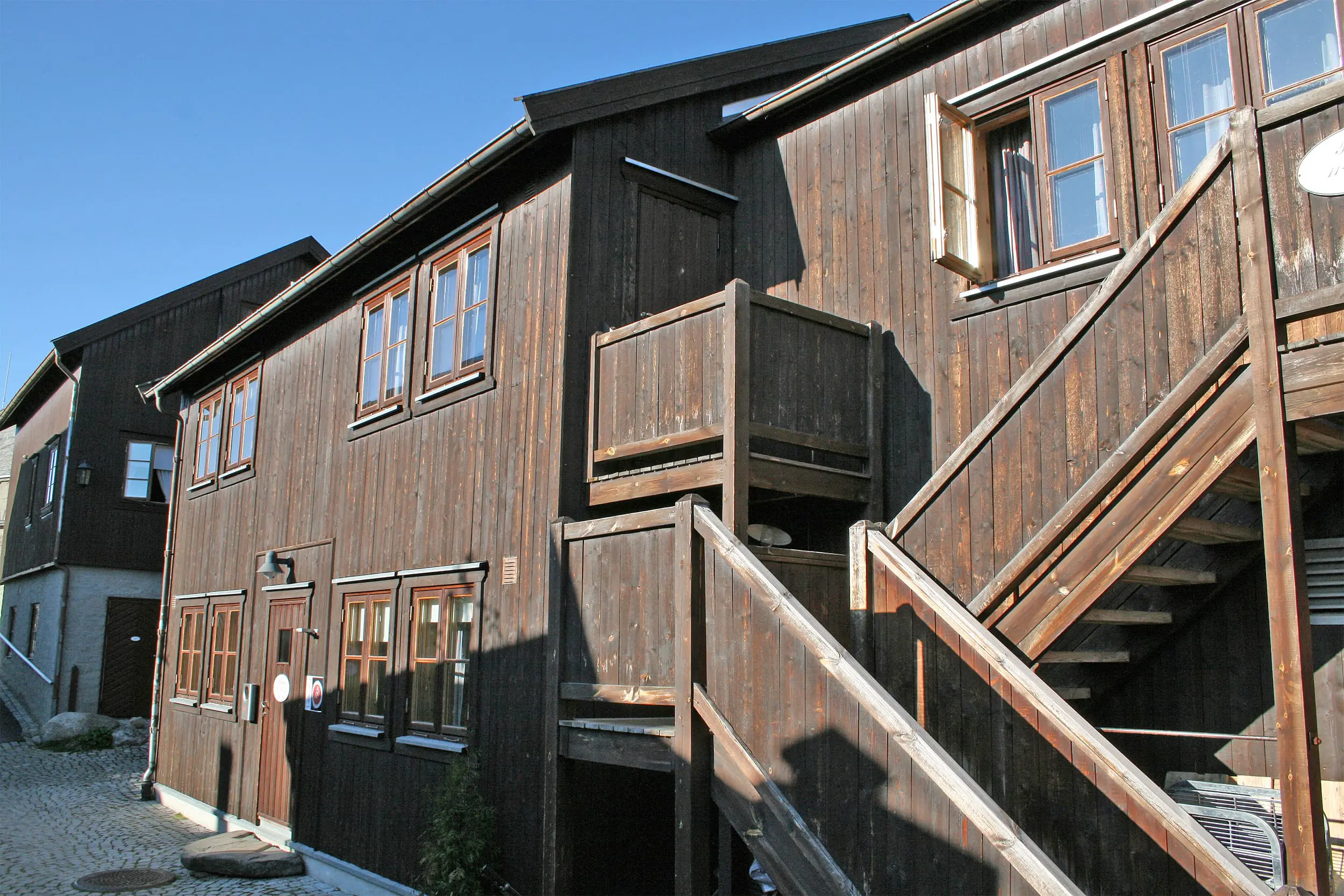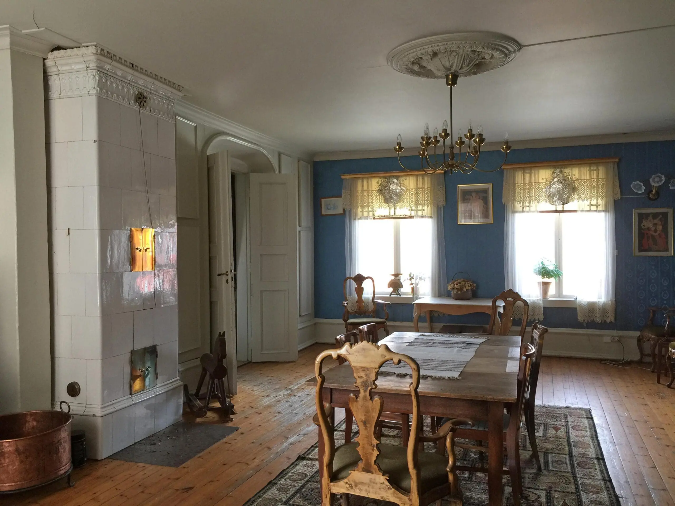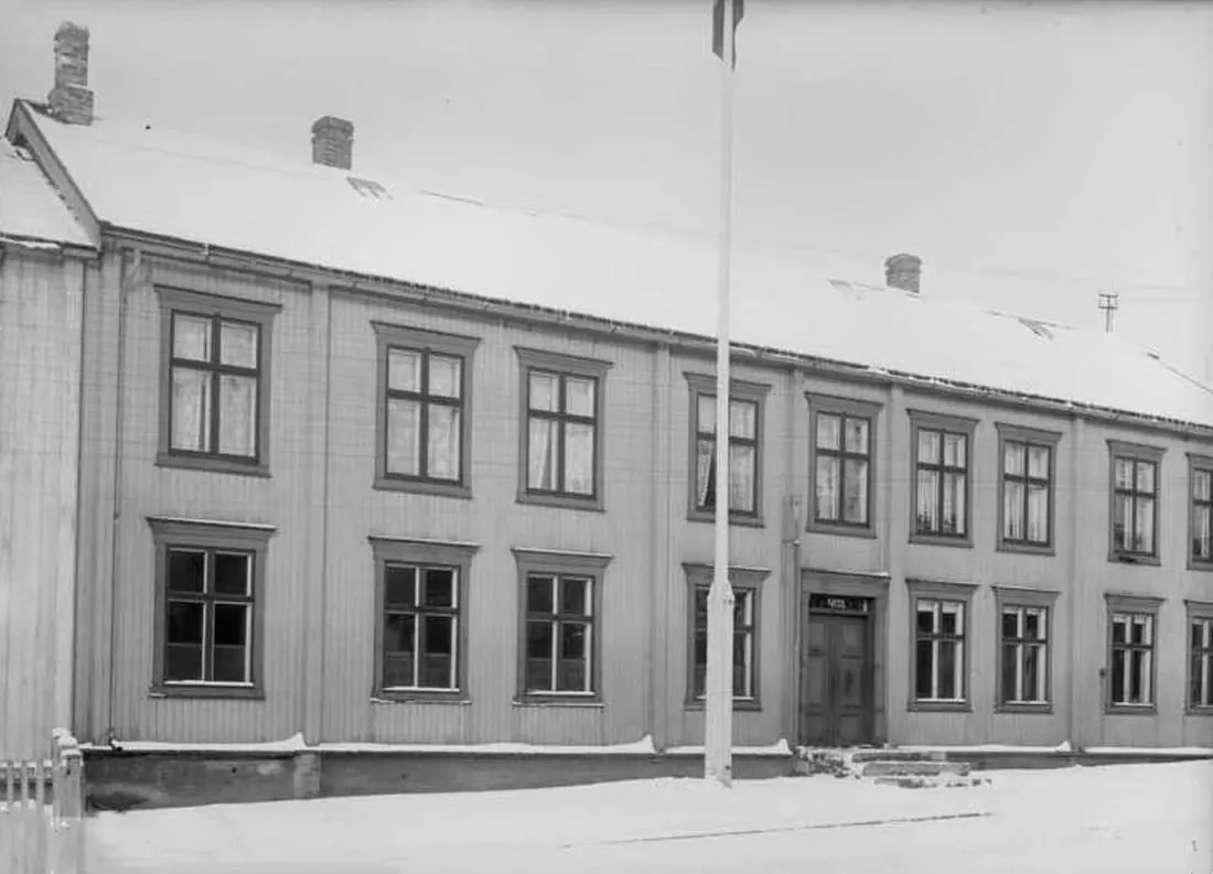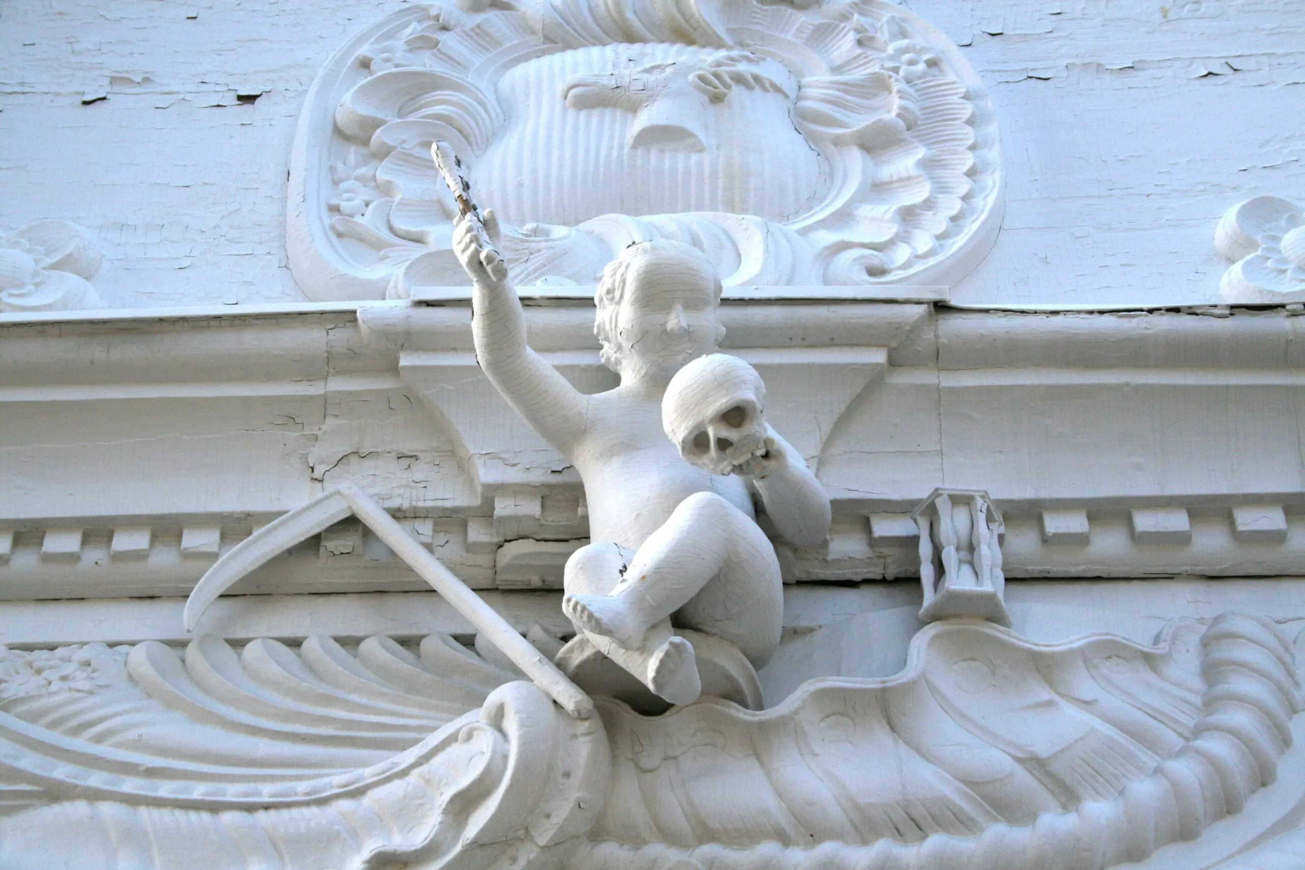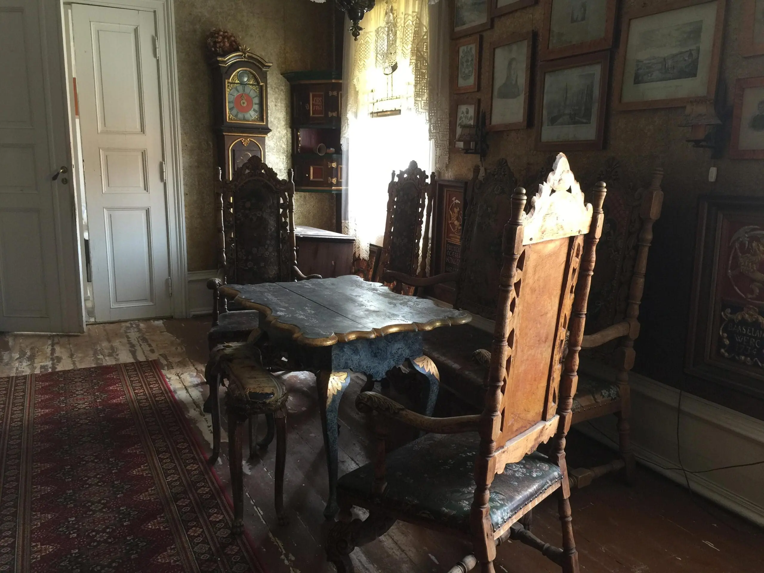 Abildgaard betyr «eple-/frukthage», og på våpenskjoldet finner man hjelm og utskårne epler. Peter Abildgaard var gift med søster av verksdirektør Peder Hiort, og det kan være forklaringen på at skjoldet også har et hjortehode. Dette bildet viser våpenskjoldet etter restaureringen i 2017.