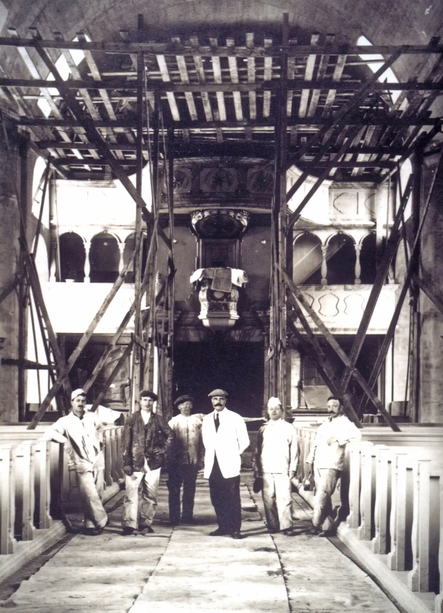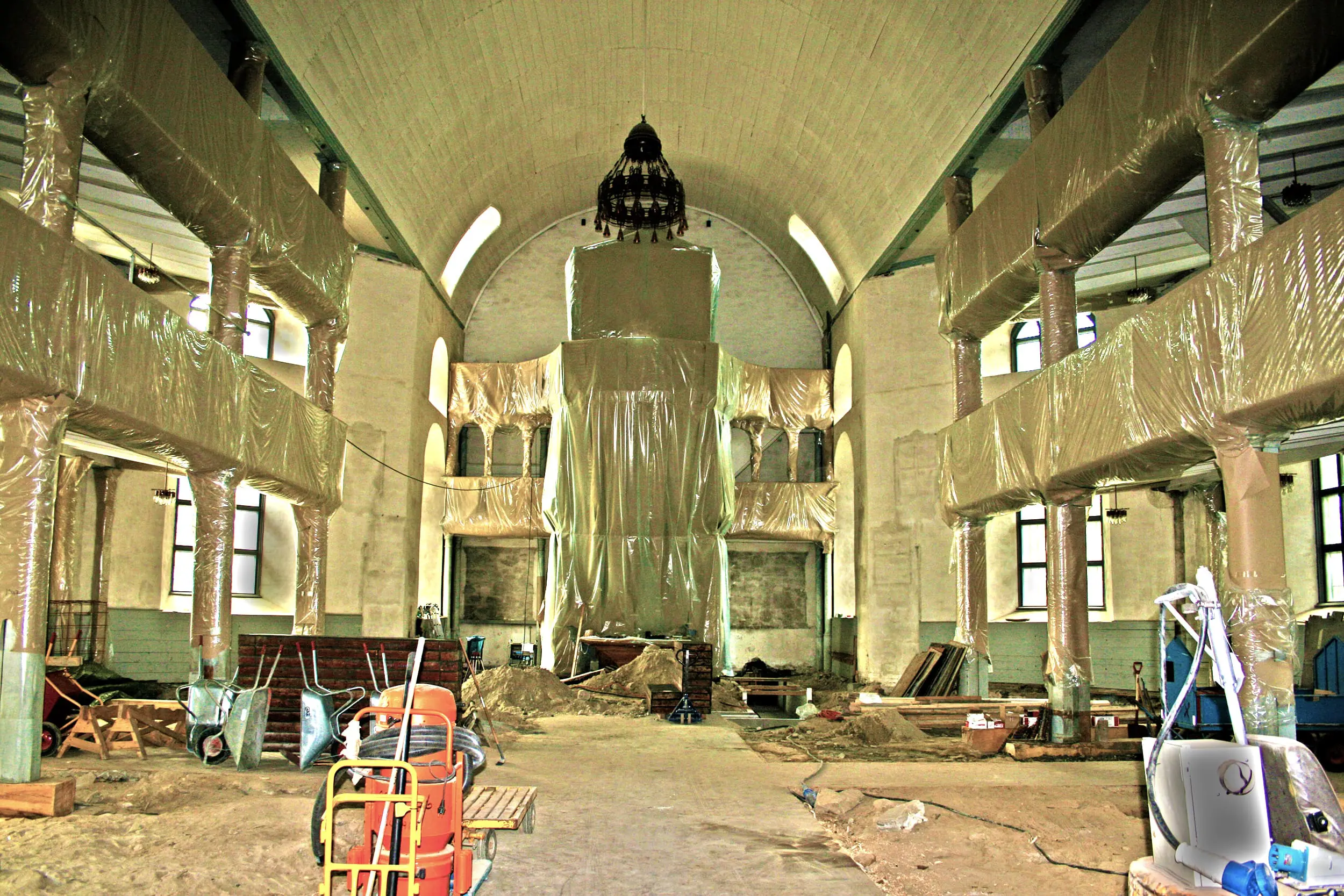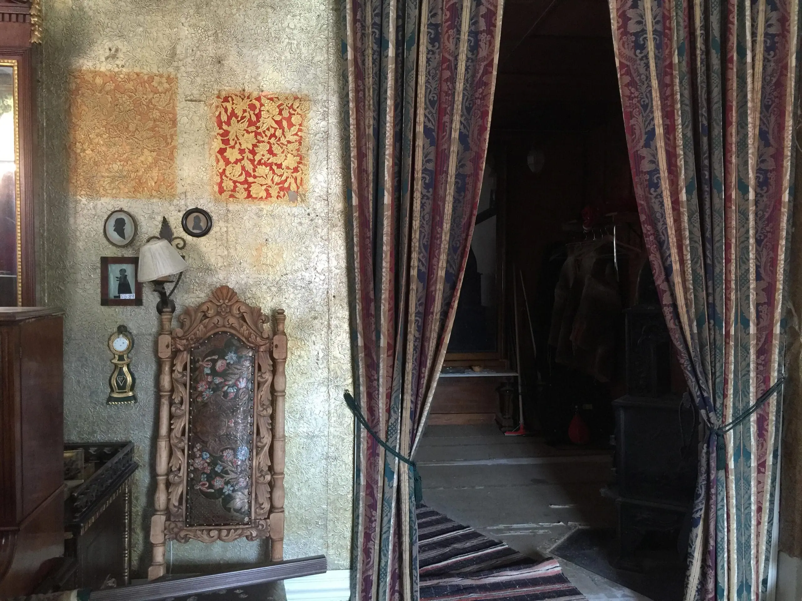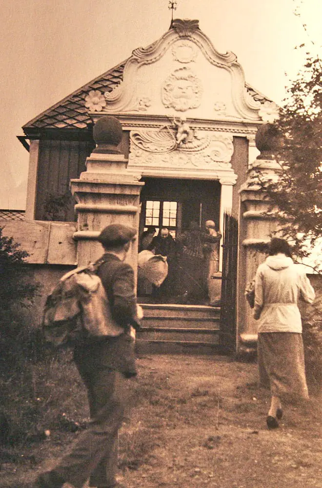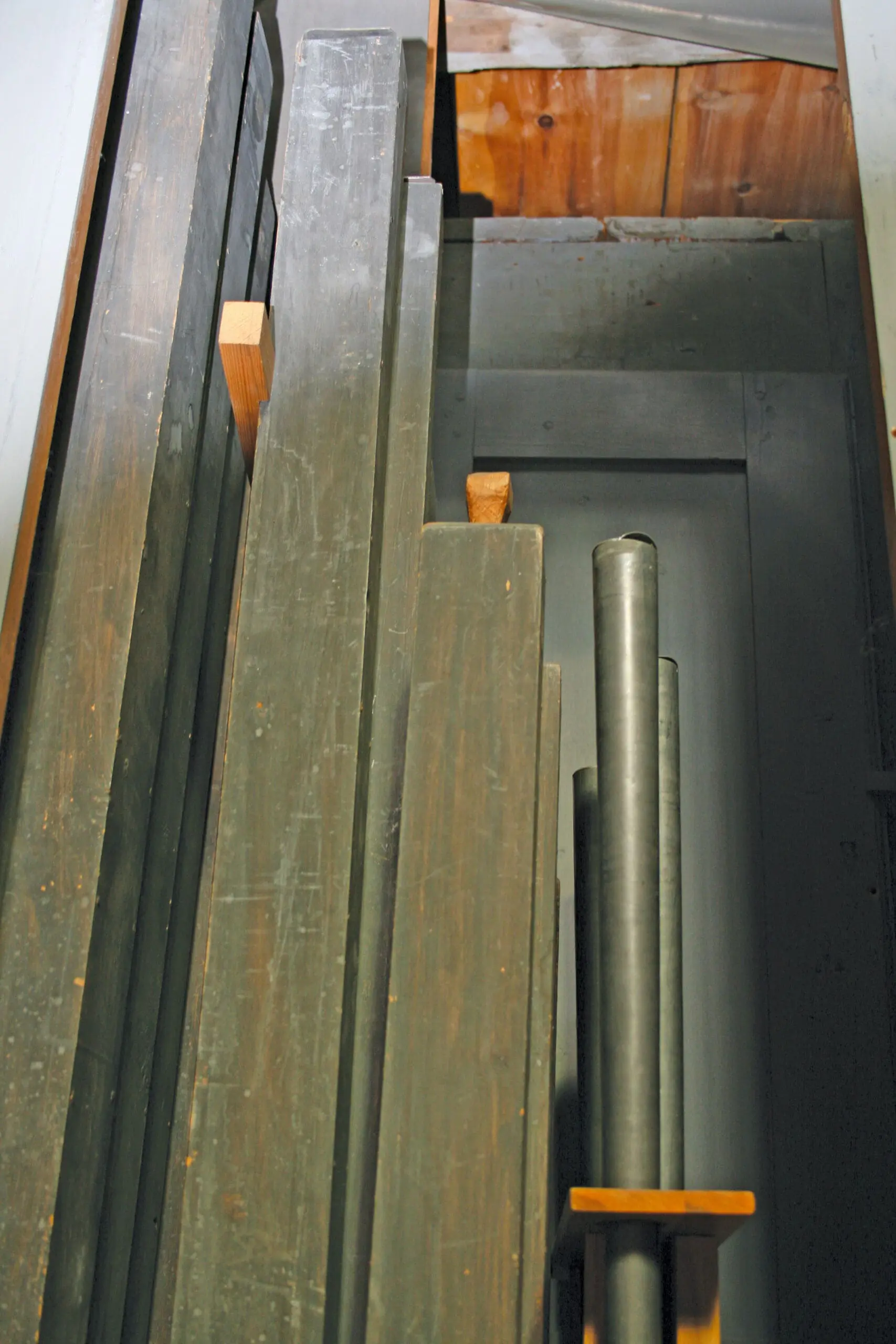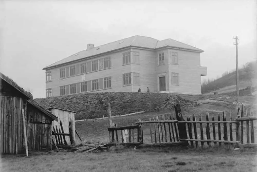 Abildgaard betyr «eple-/frukthage», og på våpenskjoldet finner man hjelm og utskårne epler. Peter Abildgaard var gift med søster av verksdirektør Peder Hiort, og det kan være forklaringen på at skjoldet også har et hjortehode. Dette bildet viser våpenskjoldet etter restaureringen i 2017.